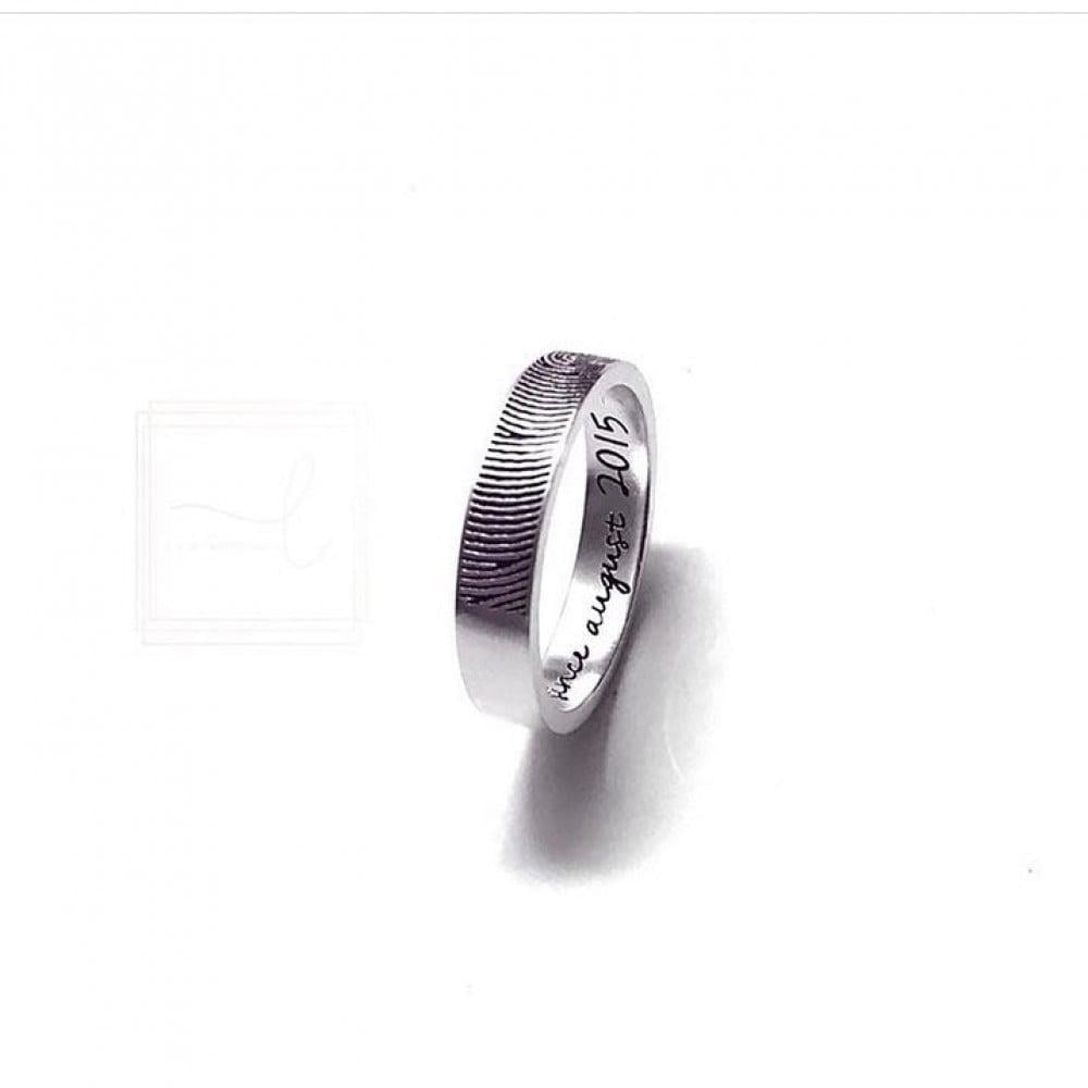 خاتم دبلة جدا أنيق ومميز مع نقش بصمة الاصبع وكتابة داخلها بطريقة فنية والدبلة متوفرة بطلاء ذهبي أو فضي أصلي ومتوقر كذلك بجميع المقاسات