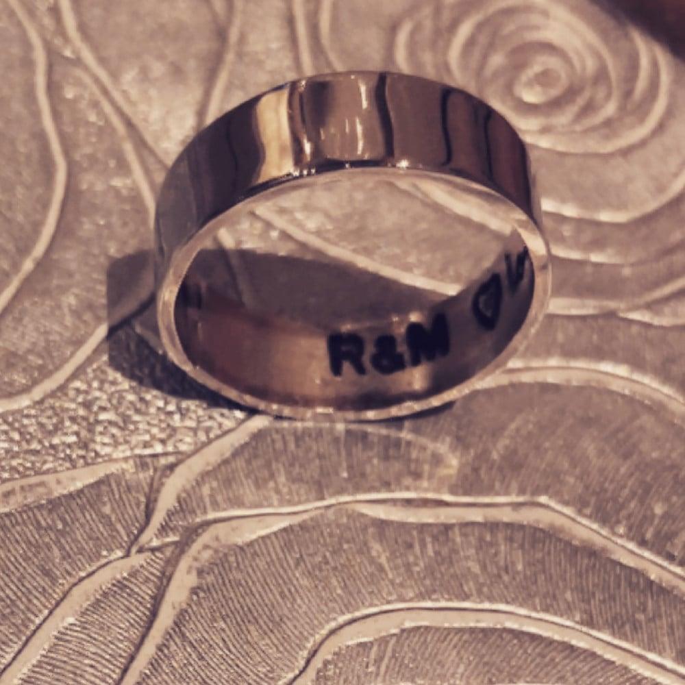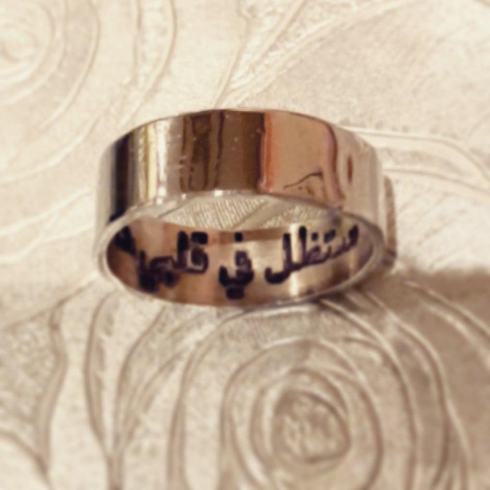 خاتم دبلة مميز بحفر ما تريد بتقنية الليزر المتطورة من معدن أصلي بطلاء ذهب عيار 21 أو فضة عيار 925 نصممه بالظبط حسب الطلب ومتوفر بجميع المقاسات