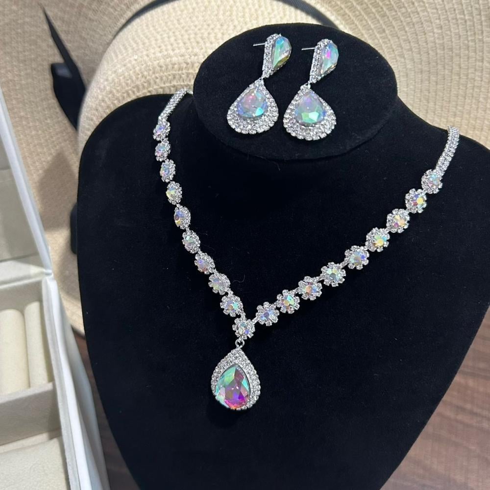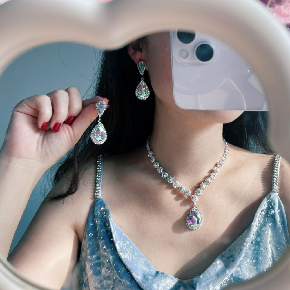 طقم زركون قلادة و اقراط فخامه ليعكس رقتك الشخصيه .