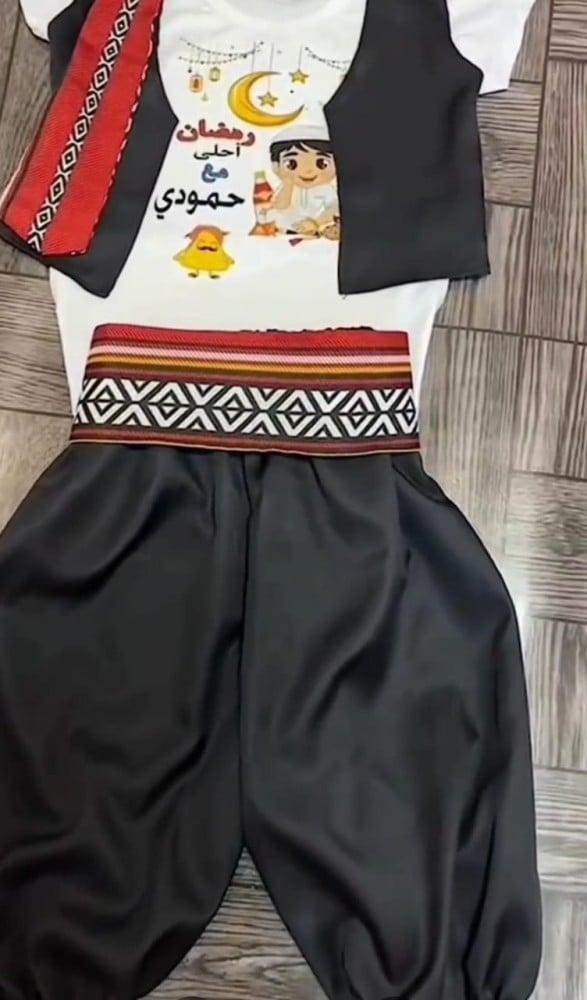 قريقعان رمضان طقم ولاديوفر لكم متجر وجدان افضل موديل ولاديسديري +تيشرت بالاسم +بنطلون+رابطة راس او قبعه ولاديقماش سدو احمر مع بيج تصميم الاسم حسب الطلبمتوفر من عمر 1 شهر لين 12 سنه